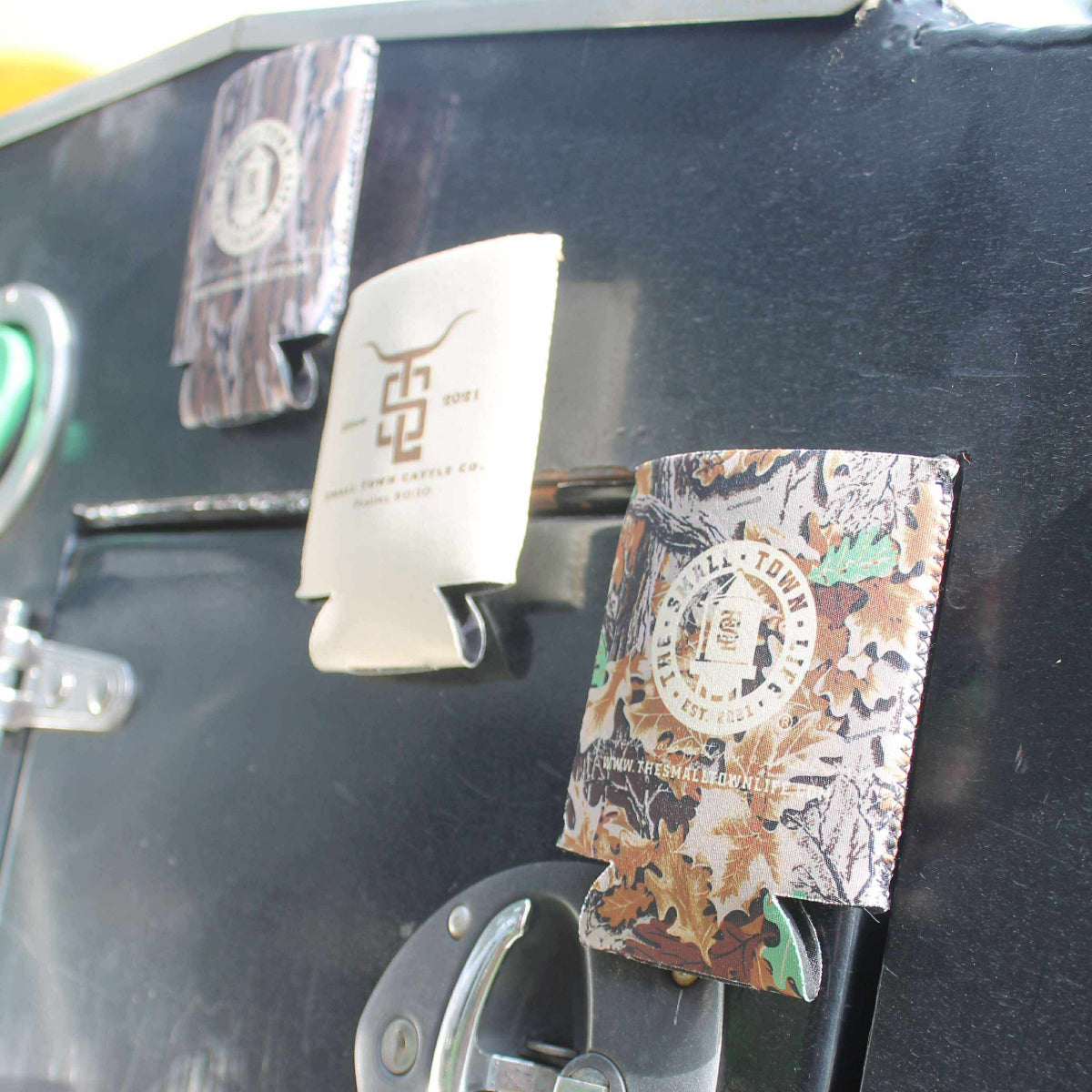 Keep your drink cool and hidden with these camo KOOZIES! The magnetized design keeps them securely hanging around with your favorite beverage. Perfect for any outdoor adventure - grab a "cold one" and blend in!